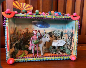 Come and have fun with us creating Assemblage Art! Assemblage Art combines mundane objects, most of which are recycled, in new and surprising ways. This class will focus on ways to attach objects to a substrate. The only limit is your imagination. The theme will be “The Southwest,” with an emphasis on Arizona. A cigar box, miscellaneous objects, glue and fasteners will be provided. Bring any small southwestern memorabilia if you wish to personalize your piece.